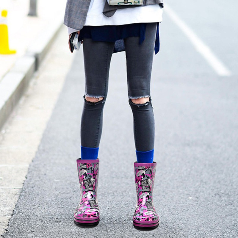 HelloZebra women's rain boots women's waterproof shoes rubber shoes casual overshoes adult outdoor rain boots