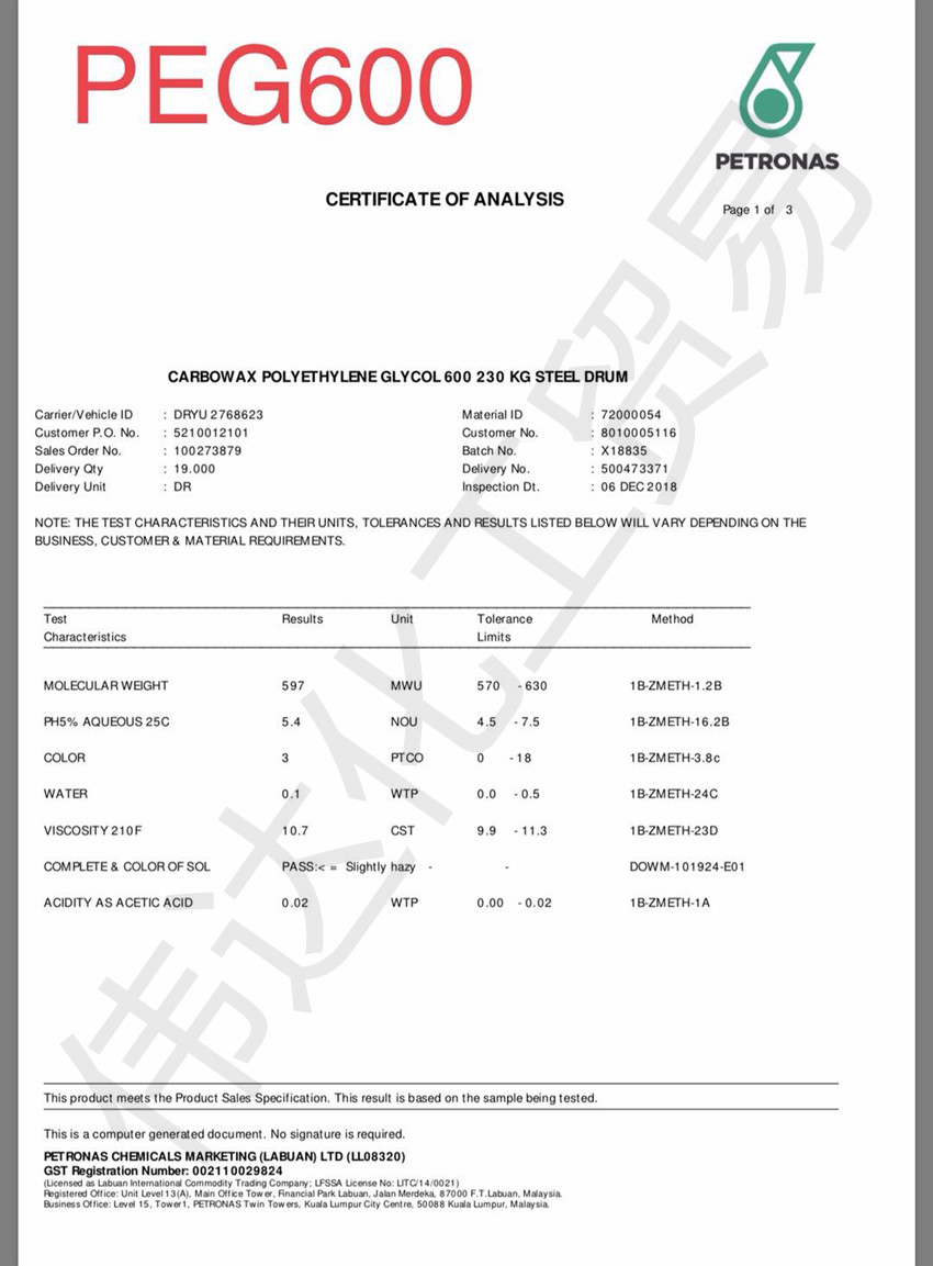 Polyethylene glycol 600 USA Dow PEG600 Surfactant Peg600 original imported