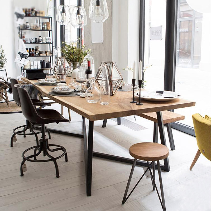 Nordic dining table industrial wind wrought iron solid wood desk loft computer table long coffee table conference table modern simplicity