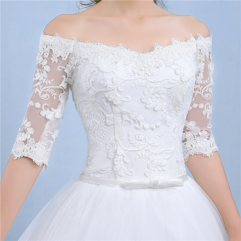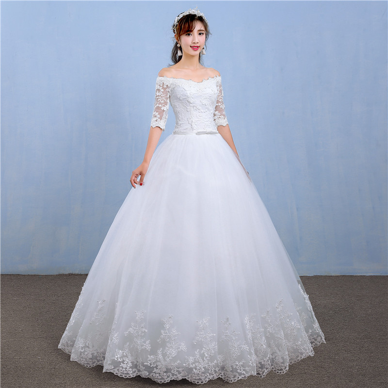 Dust World Six Joy Light Lavish Brand Wedding Dress 2021 New Fashion Straight Shoulder Middle Sleeve Bridal Palace Wedding Dresses Dress