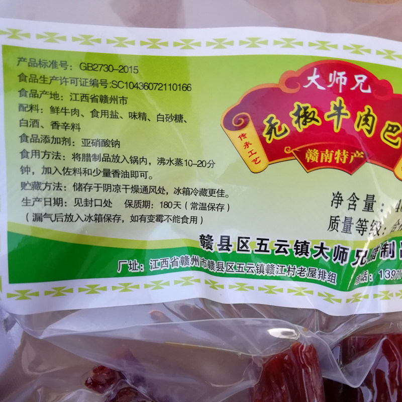 Jiangxi Gannan specialty Ganzhou master beef beef jerky 400g with pepper pickled air-dried beef products