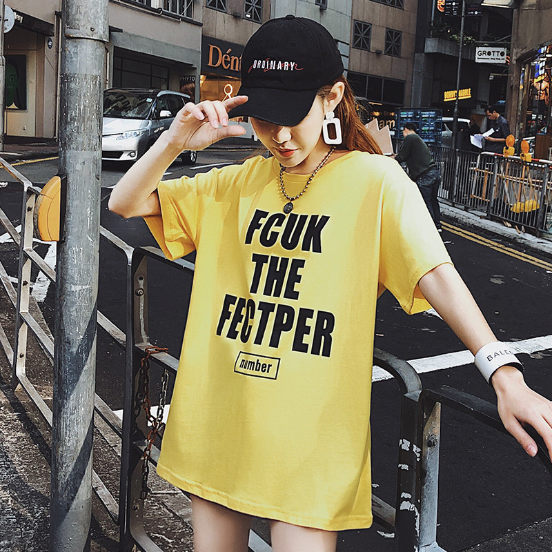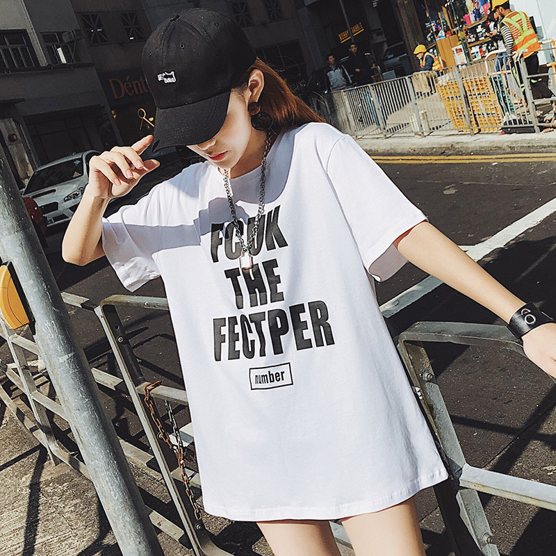 Spring and summer medium long version short sleeve t-shirt female loose beating bottom-shirt with half-sleeve 2022 new net red Korean version 100 hitch