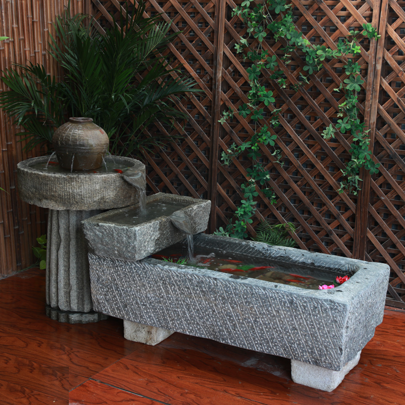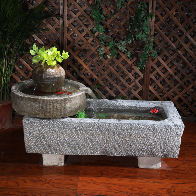 Old Stone Tank Fish Tank Stone Raised Fish Pond Bull Trough Green Stone Vat Sink Indoor building View outdoor Courtyard Water Landscape