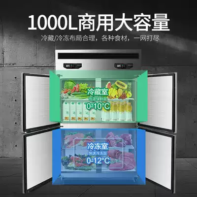 Four-door refrigerator freezer Commercial large-capacity refrigeration and freezing double temperature six-door vertical fresh-keeping cabinet kitchen refrigerator
