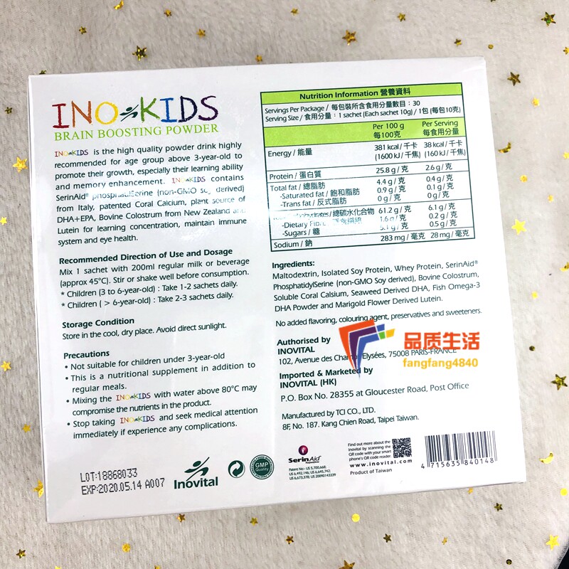 (Hong Kong Direct Mail Consultation Customer Service) Inovital Child Treasure Brain Development Memory Supplemental Calcium Increase