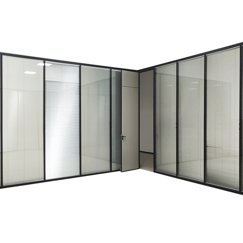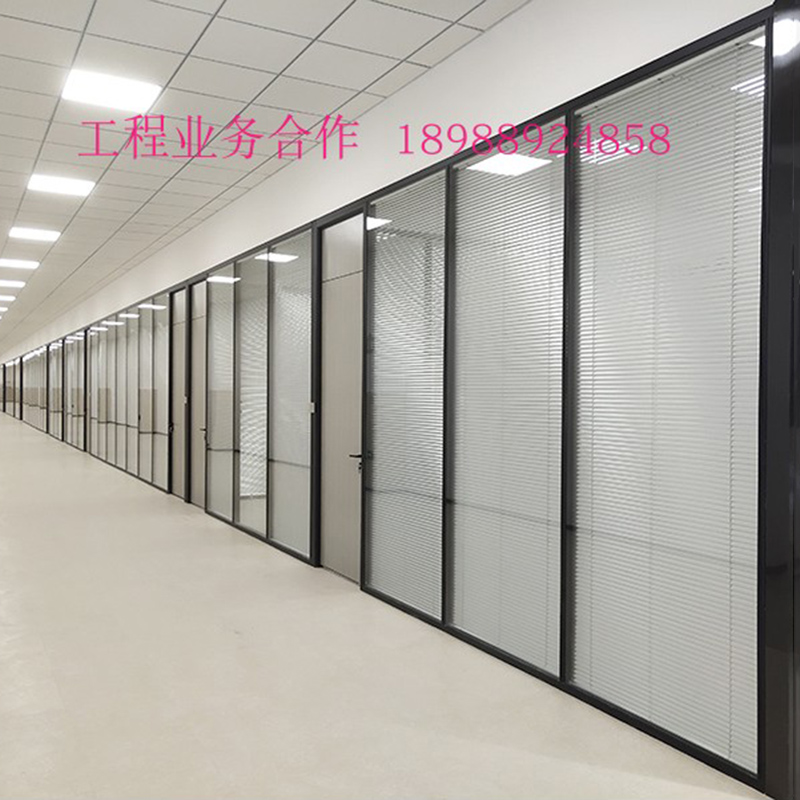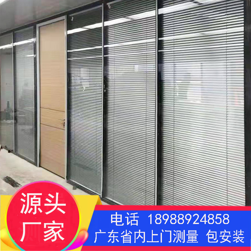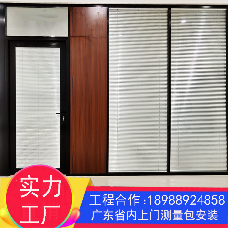 Guangzhou office glass high partition wall aluminum alloy double layer double glass louver partition tempered Zhuhai Foshan interlayer wall