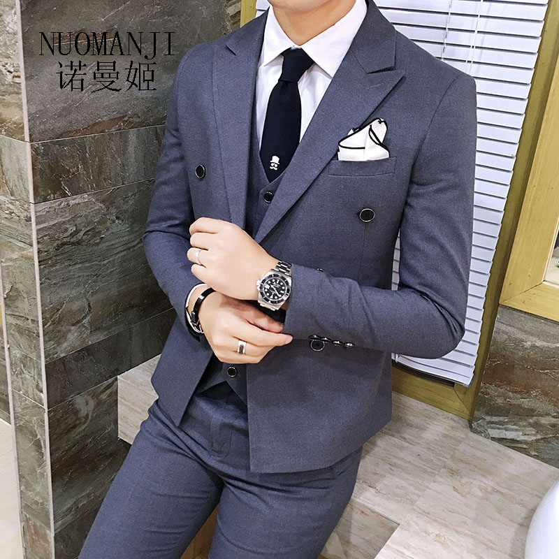 Norman Ji high-end self-cultivation trendy suit double-breasted urban fashion casual solid color suit autumn new men