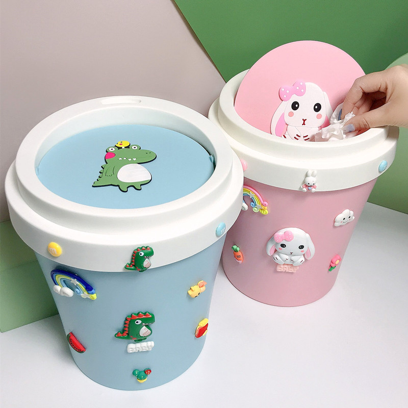 Cartoon Creativity with cover Home Large Number of bins cute Girl bedroom Living room Kitchen Rocking Cover Light Lavish Wastebasket-Taobao