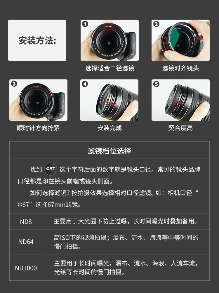 Kase card color ND light reduction mirror nd mirror 49 52 58 67 72 82 77mm medium gray mirror ND1000 is suitable for Canon Sony Fuji