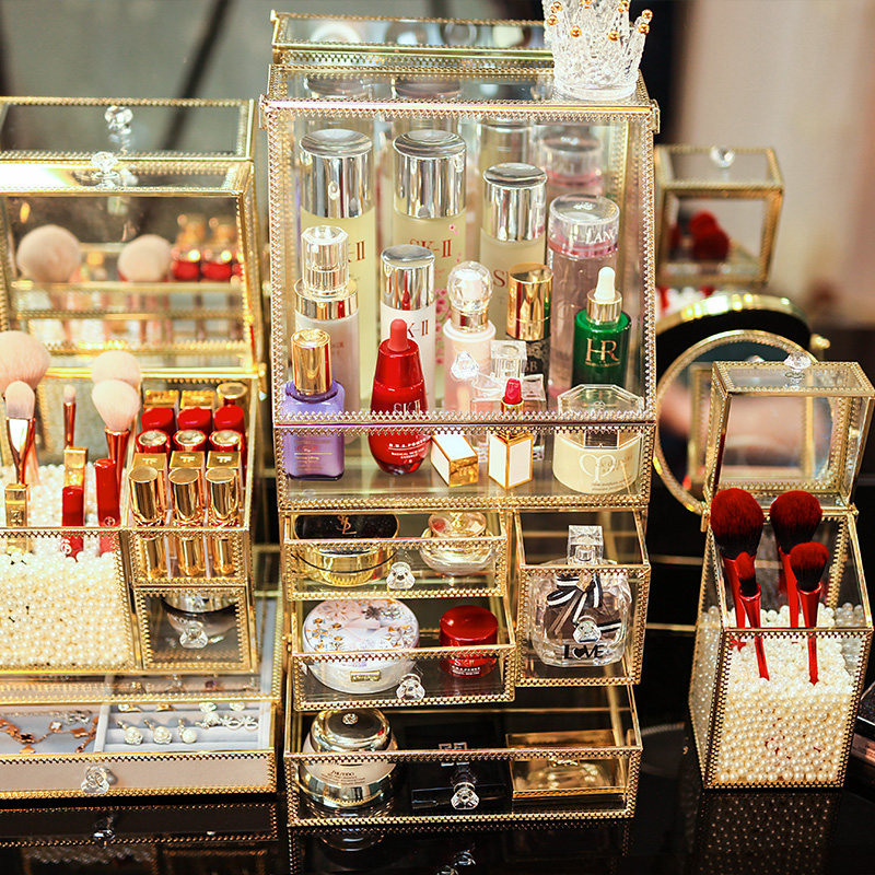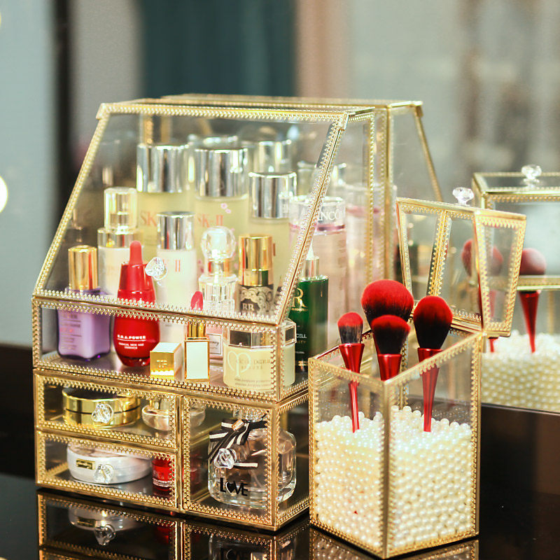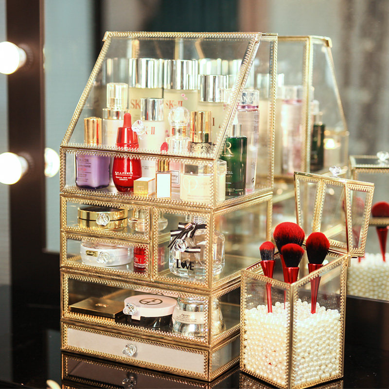 Light Extravagant Glass Cosmetics Containing Box Dust Resistant Desktop Lipstick Red Skin Care Products Shelf Makeup Desk Finishing Box box