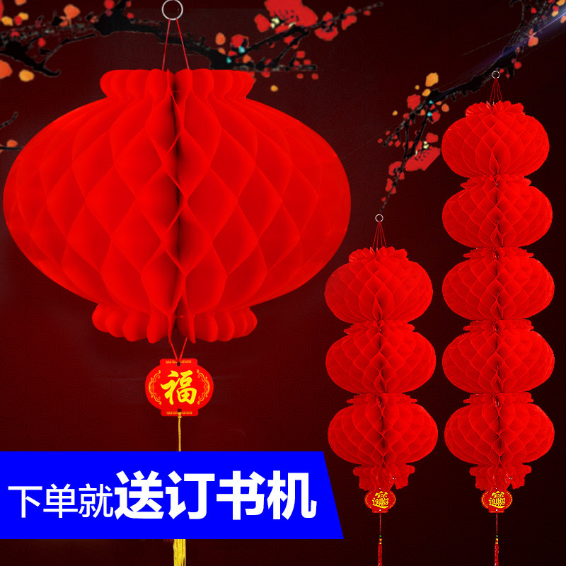 Spring Festival series of small paper lanterns wedding wedding lanterns New Year festival decoration supplies big red honeycomb lantern hanging ornaments