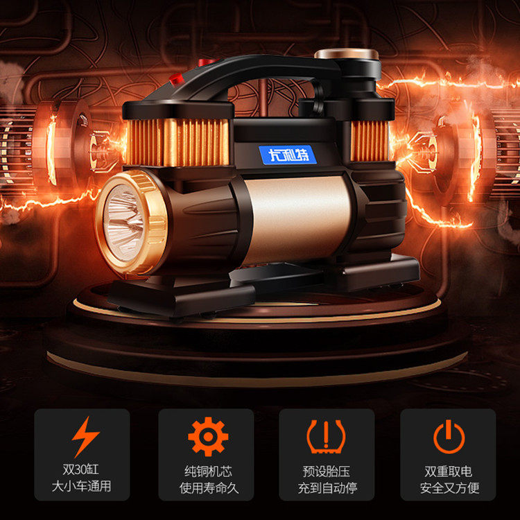 Juliet On-board Inflator Pump Twin-Cylinder Cheer Pump Small Sedan Tire Car Portable High Pressure Plus Inflator 3312