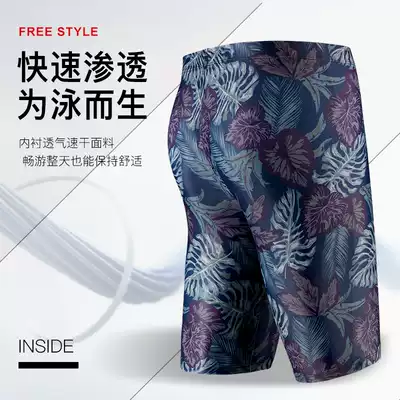 Rui Bailun swimming trunks men's five-point pants anti-embarrassment men's swimwear sexy printing professional five-point boxer swimming trunks