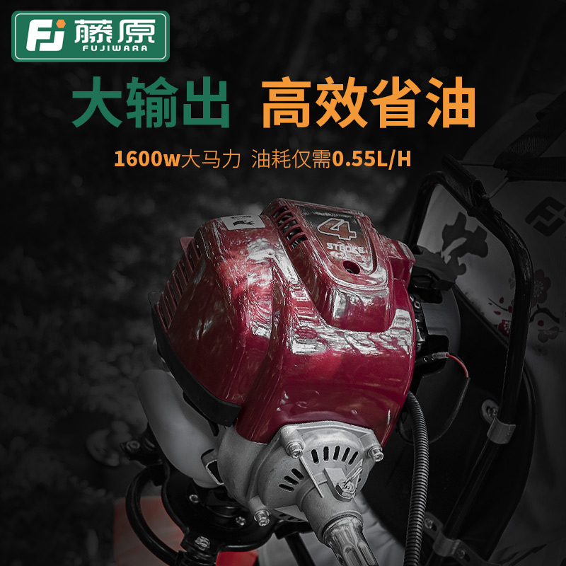 Fujiwara lawn mower four stroke small piggyback gasoline weed harvester agricultural reclamation and ripping machine cultivator