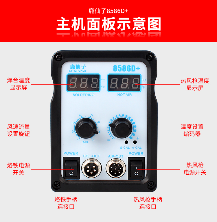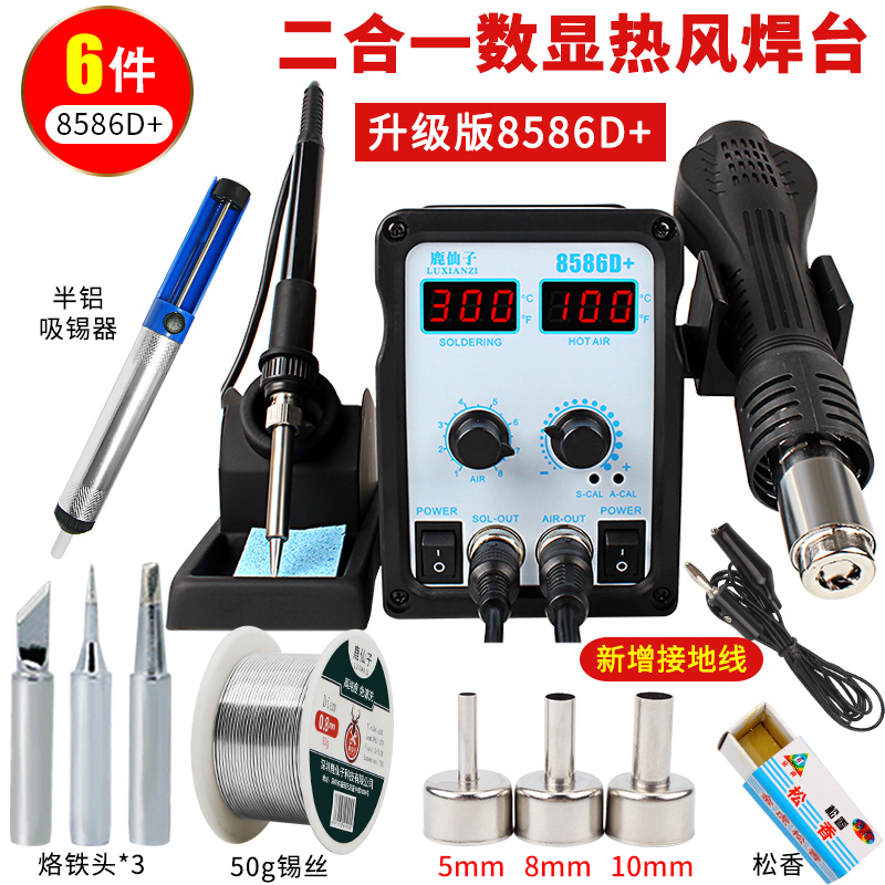 New upgrade (double digital display grounding wire) 8586D (double digital display grounding wire) 8586D send 6 pieces of double digital display 8586D heating core 5 soldering iron head tin wire