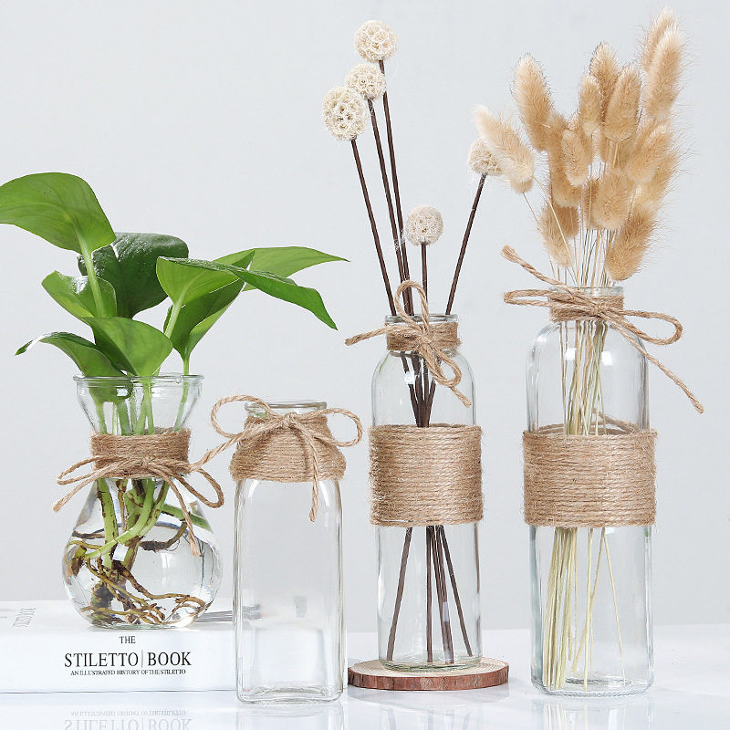 Transparent hydroponic flower arrangement hemp rope drying flower vase