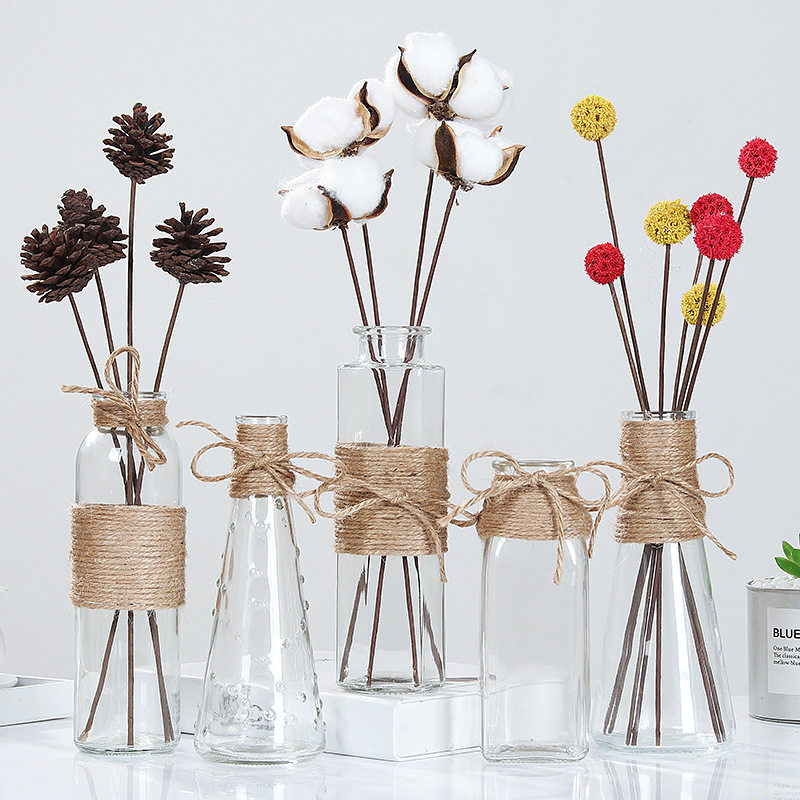 Nordic air-dried flowers small fresh home decoration decoration photo props transparent hydroponic flower arrangement hemp rope vase