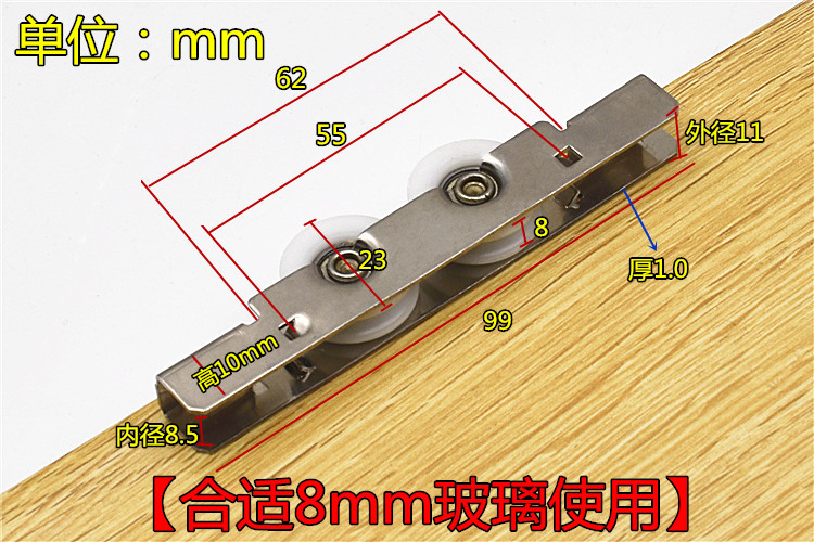 304 stainless steel shaft 8mm frameless balcony glass door and window pulley Bathroom glass sliding door roller double wheel