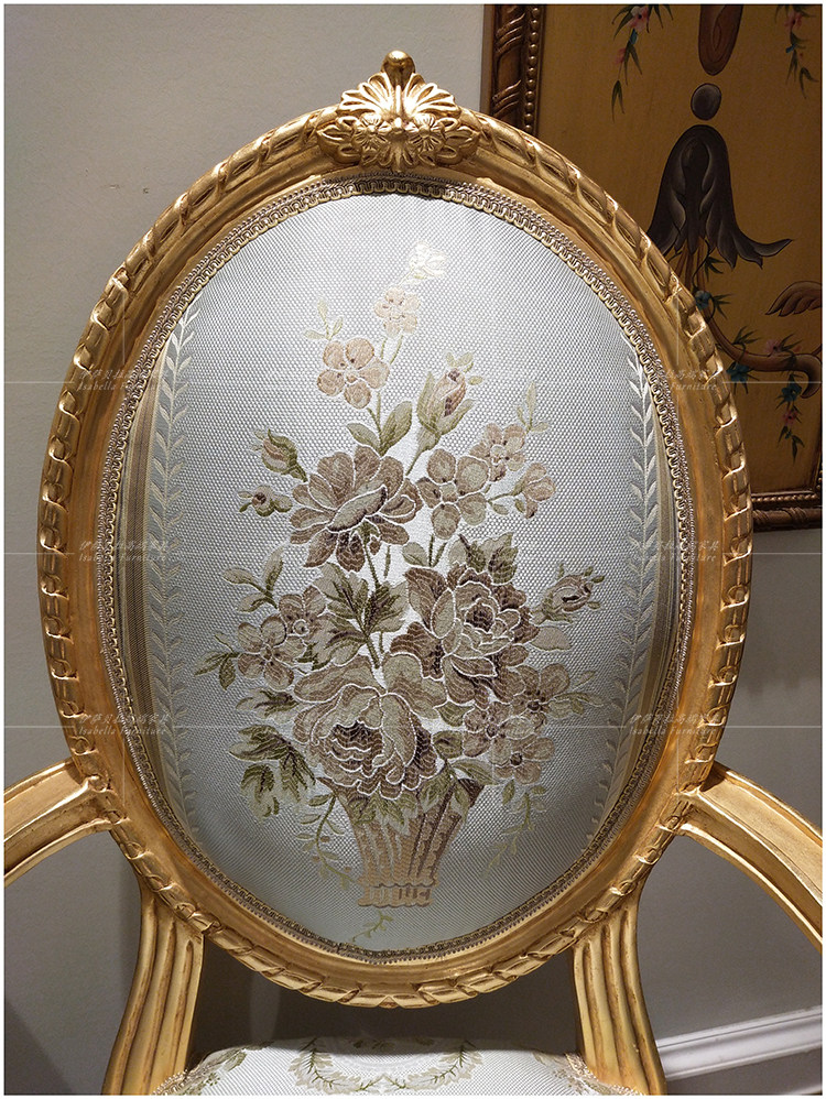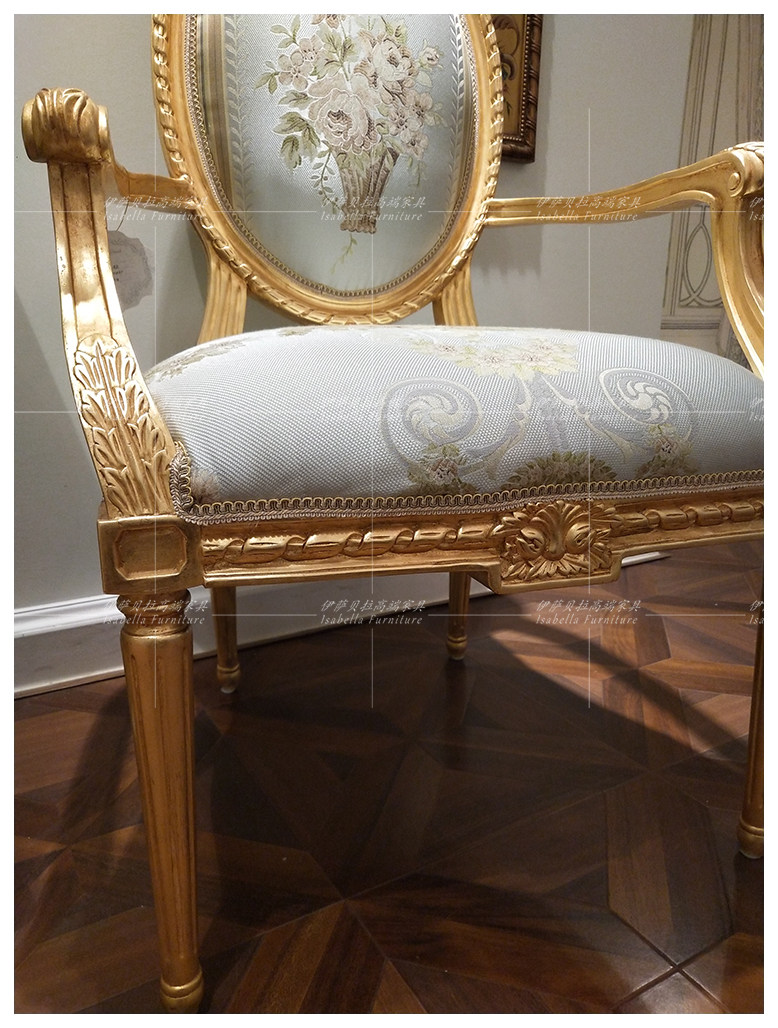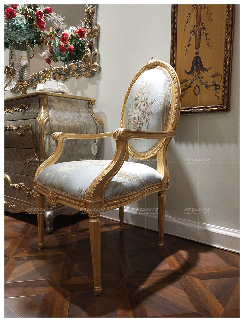 Isabella Law style palace solid wood rework engraving armrest single chair light blue small family type sofa chair living room