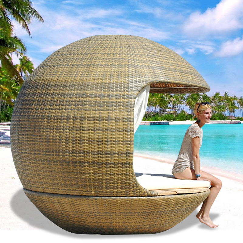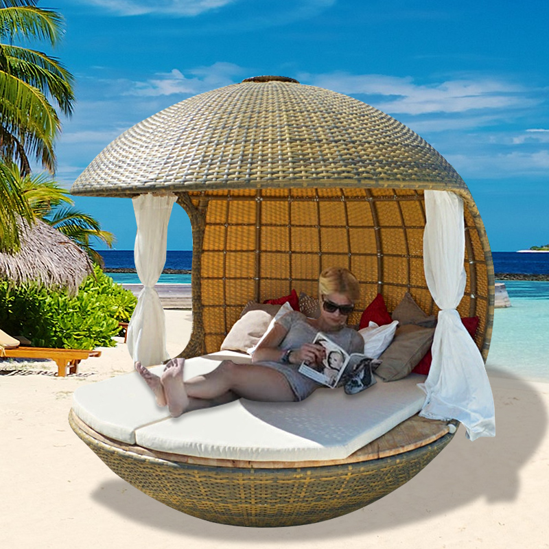 Outdoor lying bed beach swimming pool personalized custom creative round lazy double single bed sofa bed reclining chair rattan chair rattan weaving