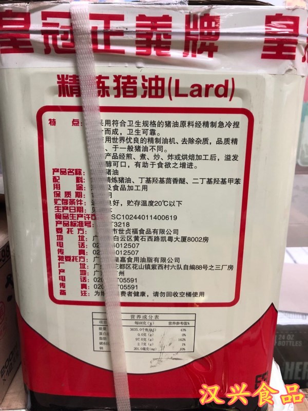 Crown Justice Refined Lard 15KG barrels of justice Righteous Pig Oil Up and Oil Catering Special Jiang Zhejiang Shanghai