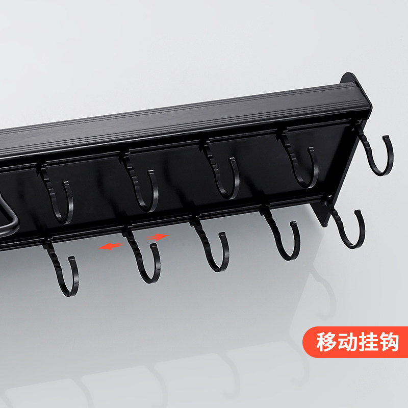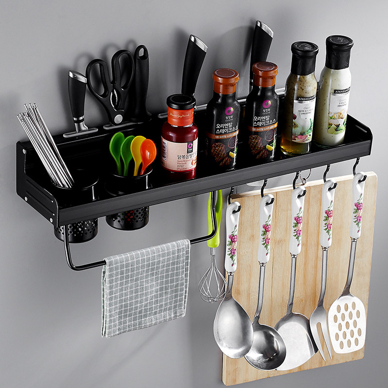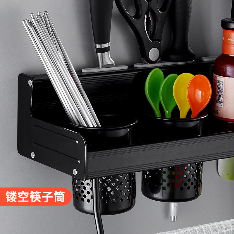 Space aluminum kitchen pendant black seasoning supplies shelf punching wall hanging free punching hanger knife holder chopsticks