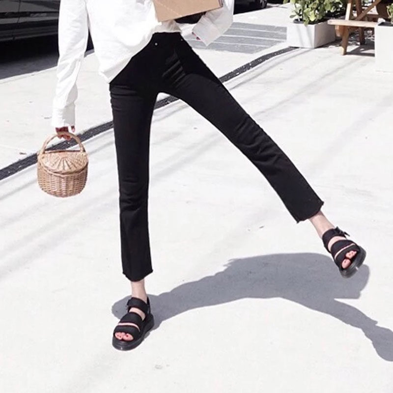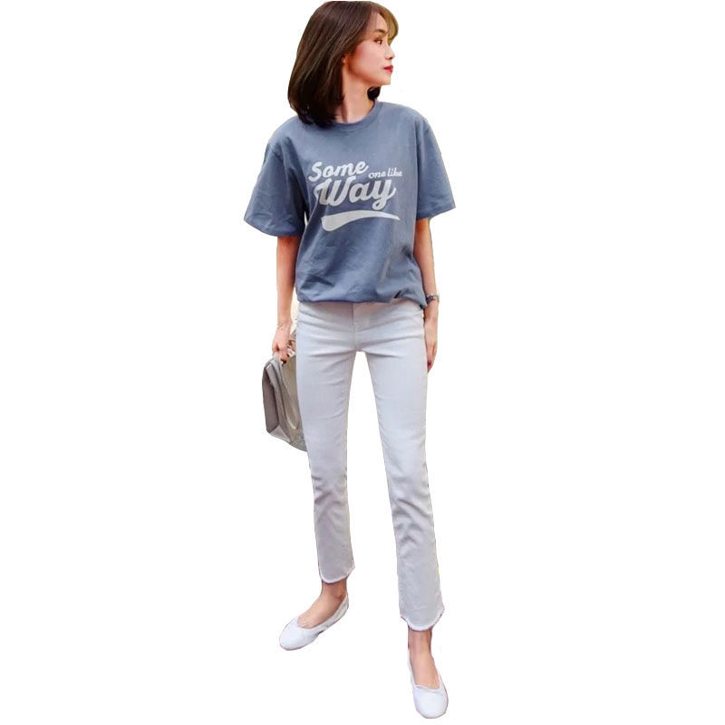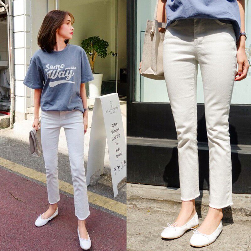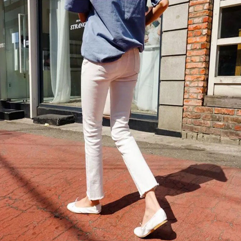 2022 Summer new thin section White Jeans Woman 90% Slim Tall Waist Ulzzang Straight Drum Hair Side Pants