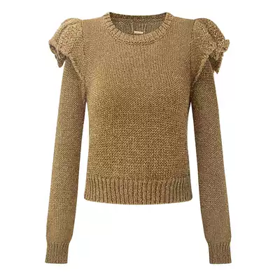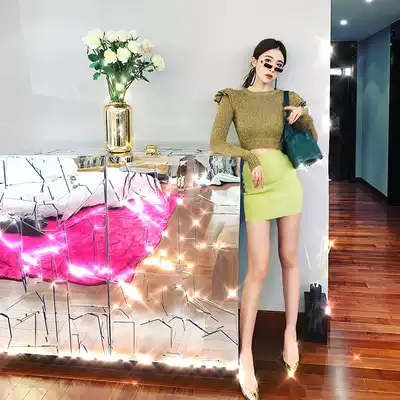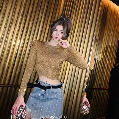 ALUONLINESHOP short shiny sweater women's spring new small fungus stitching slim top