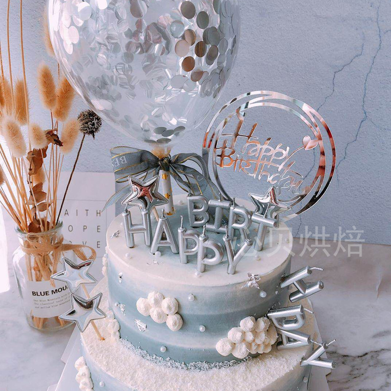 Premium gray series cake decoration plug-in Nouveau Riche silver candle Birthday party decoration Silver Acrylic plug-in