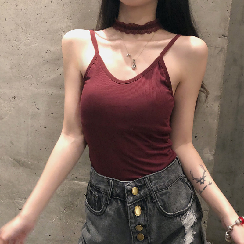 Gagga's new nemesis red anchor internal lap lace undershirt sexy beauty back harness hanging neck vest blouse
