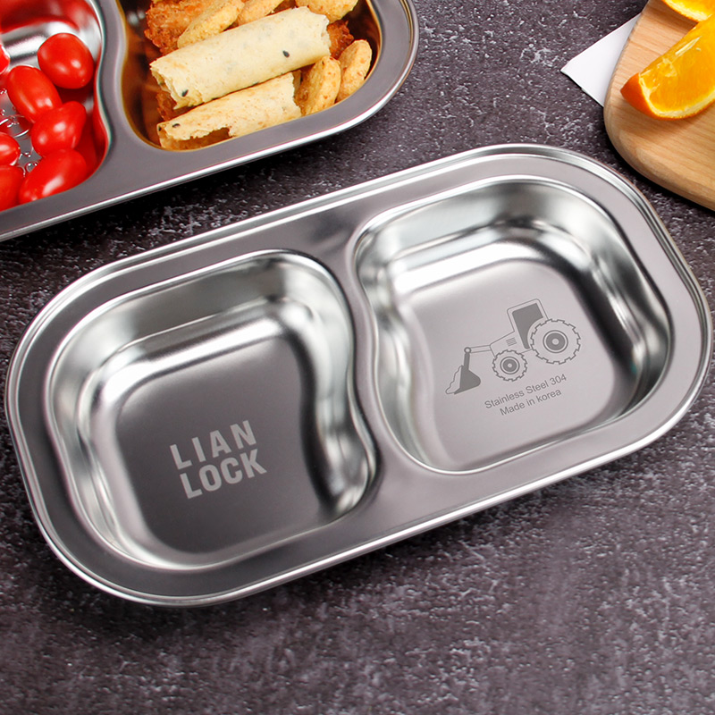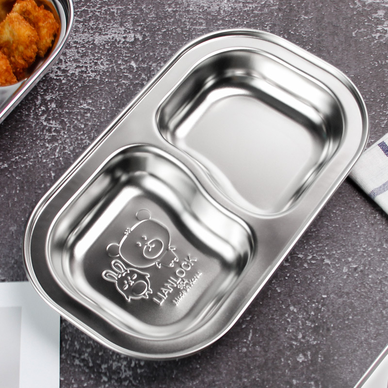 South Korea imported 2 grid plate baby snack plate cute cartoon children baby 304 stainless steel plate