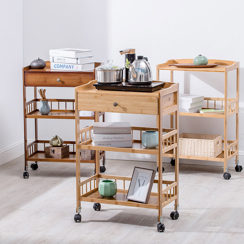 Tea 3 layer with drawer cart (full bamboo layer) (with wheel removable) send nap basket Primary color 3 layer with drawer cart (full bamboo layer) (with wheel removable) send nap basket Tea 3 layer band