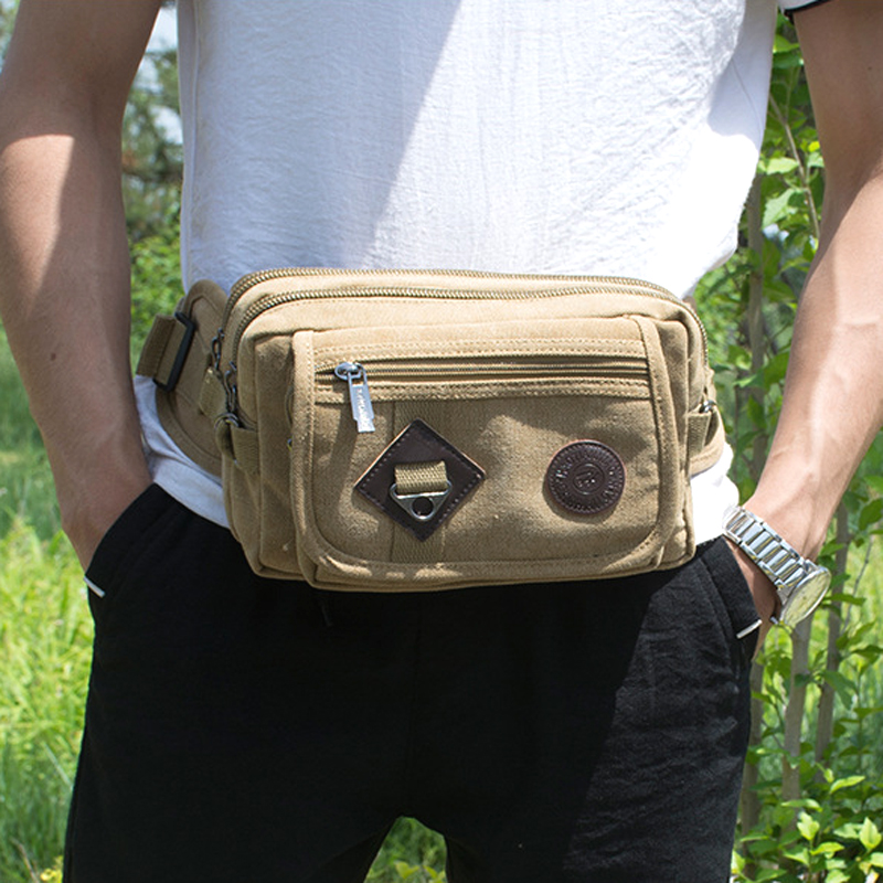 Canvas Pocket Men's Large Capacity Multifunction Work Site Work Small Collection Of Money Multilayer Casual Male Earthen Bag