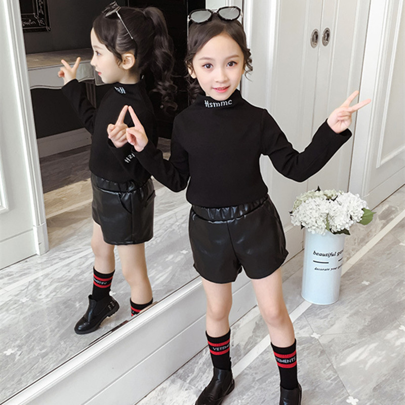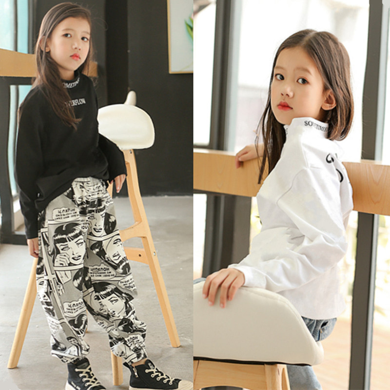 Girls T-shirts long-sleeved 2022 new spring and autumn white black thick cotton T pure cotton inner top