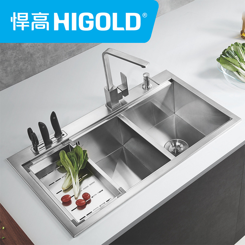 HIGOLD Higold kitchen household manual double-slot 304 stainless steel sink sink sink vegetable basin 958008