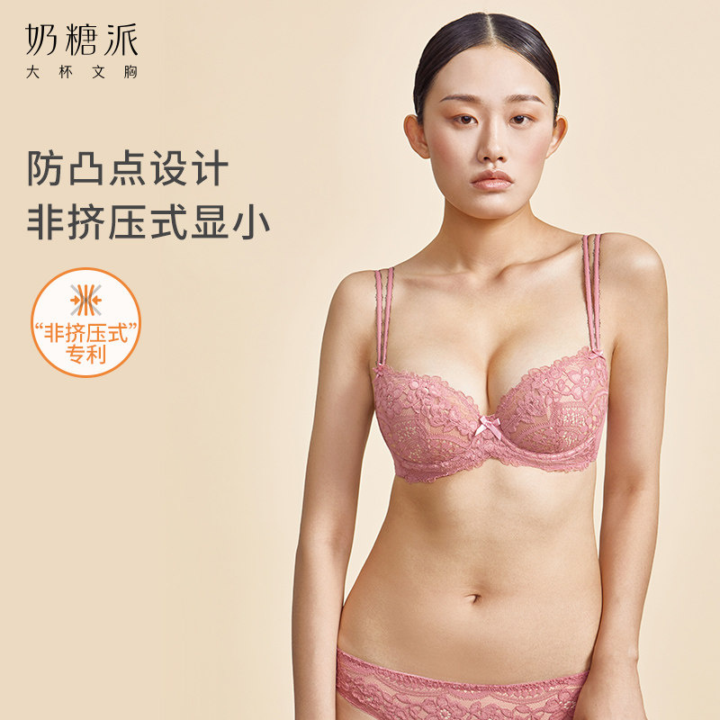 Star with the same toffee pie large cup bra cotton candy double shoulder strap large size underwear female thin anti-bump large chest is small