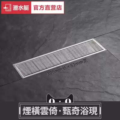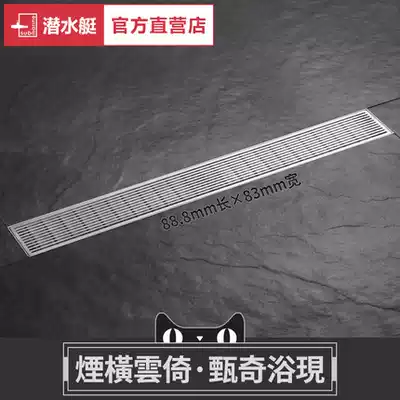 Submarine shower room rectangular floor drain bathroom all copper anti-odor large displacement long strip invisible dressing room lengthy