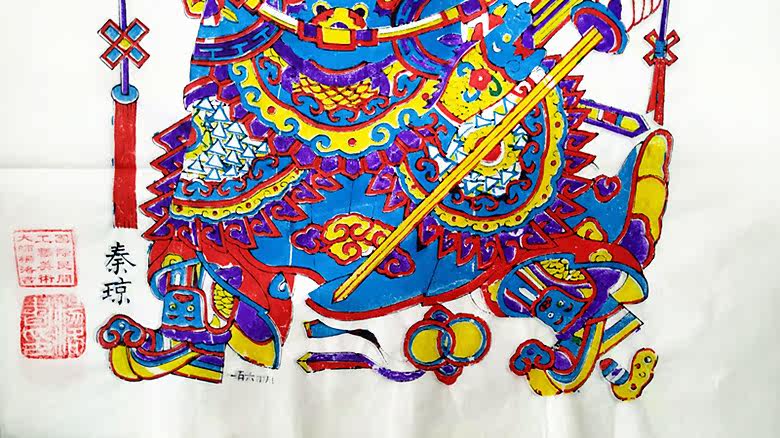 70 * 45 cm chill pavilion Yang Luoshu Yang Luoshu Tongshun Painting Shop Wood Woodblock Year Painting Door God Qin Qiongde-Taobao