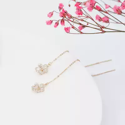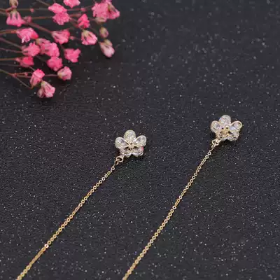 Simple wind, copper, gold-plated cherry blossom ears, superimmortal girl temperament long version of earrings design feel cold and small
