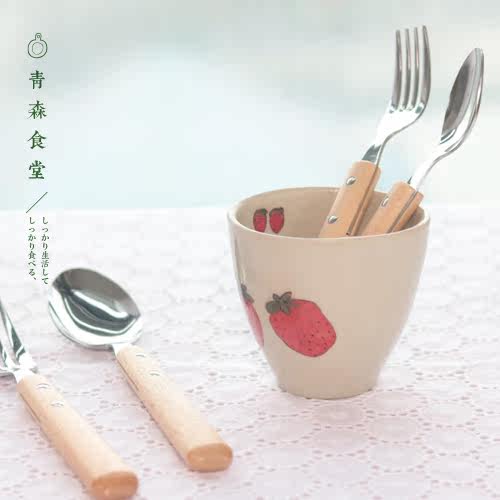Dessert spoon - Round wood handle (light) fruit fork - Round wood handle (light color) Dining handle - Round wood handle (light color) Dining fork - Round wood handle (light) Dessert spoon - Flat wood handle (dark) Fruit fork - Flat handle
