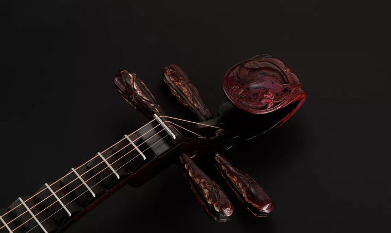 Dun Huang Pipa Limited Edition Ledance Flying Sky Great Red Acid Branches Wood Lacquer Painting Old Red Xyloist High-end Treasured Professional