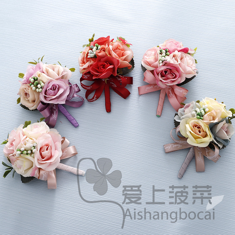 Forest department small fresh lady wrist flower Bridesmaid sister corsage Groom best man European high-end beautiful wedding simulation flower