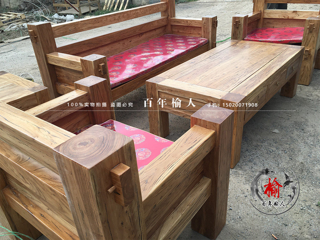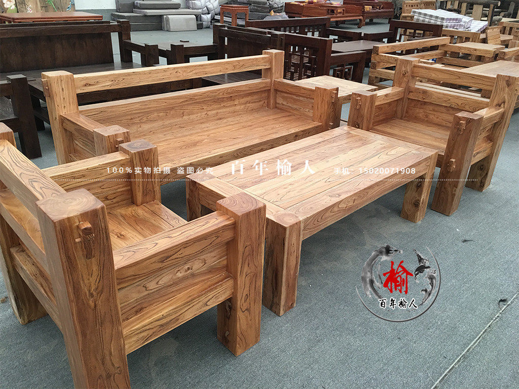 Minimalist modern old elm wood sofa Chinese solid wood modern combined wood living room Chinese winter summer dual-use wood furniture-Taobao