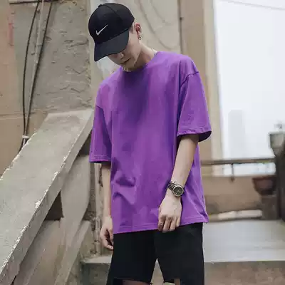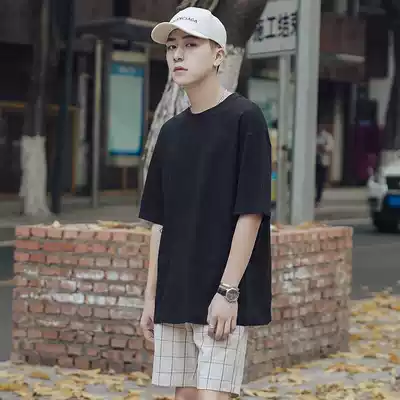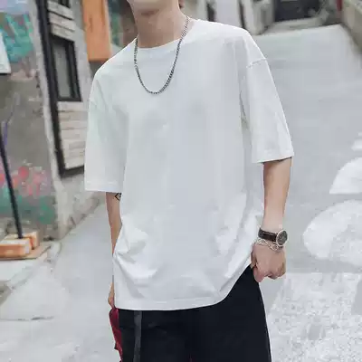 @Fangshao men's Hong Kong style summer solid color round neck loose short-sleeved T-shirt men's Korean half-sleeved T-shirt bottoming shirt tide