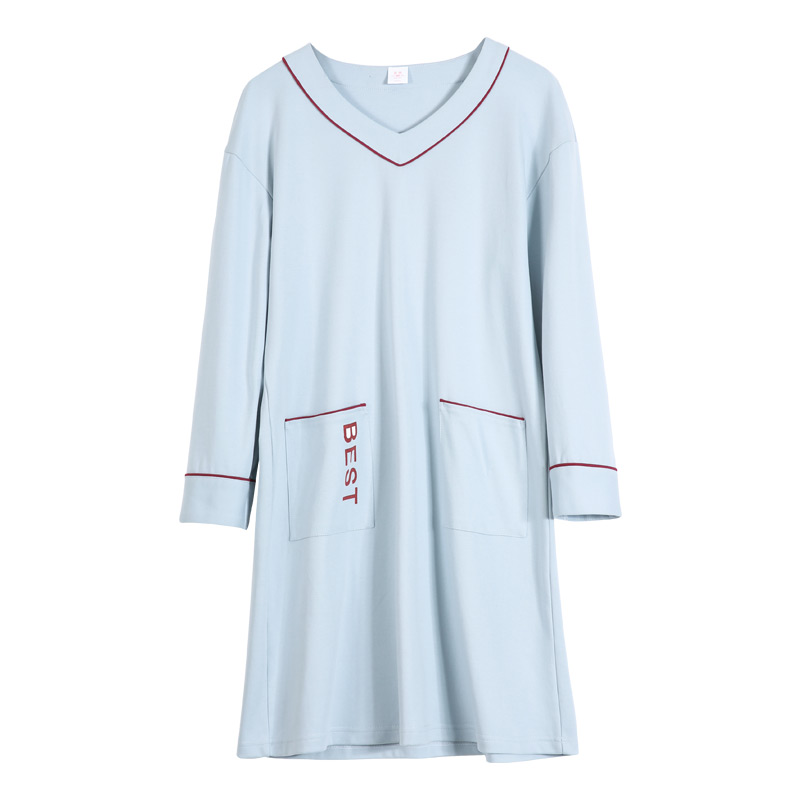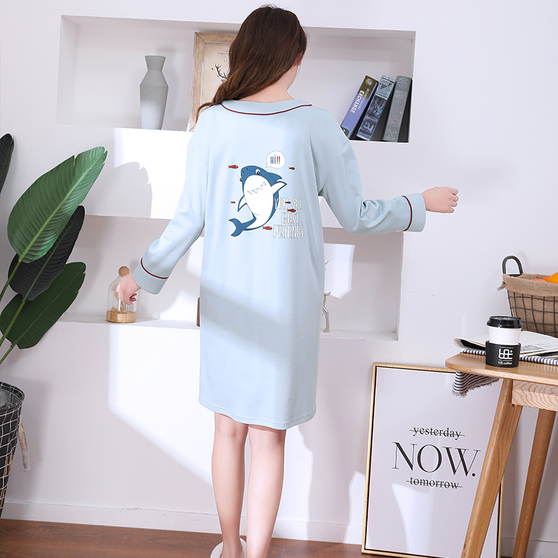 Sleeping Dress Woman Pure Cotton Spring Autumn Money Yingren V Collar Cartoon Printed Home Dress Long Sleeve Extractable Pyjamas College Wind Autumn