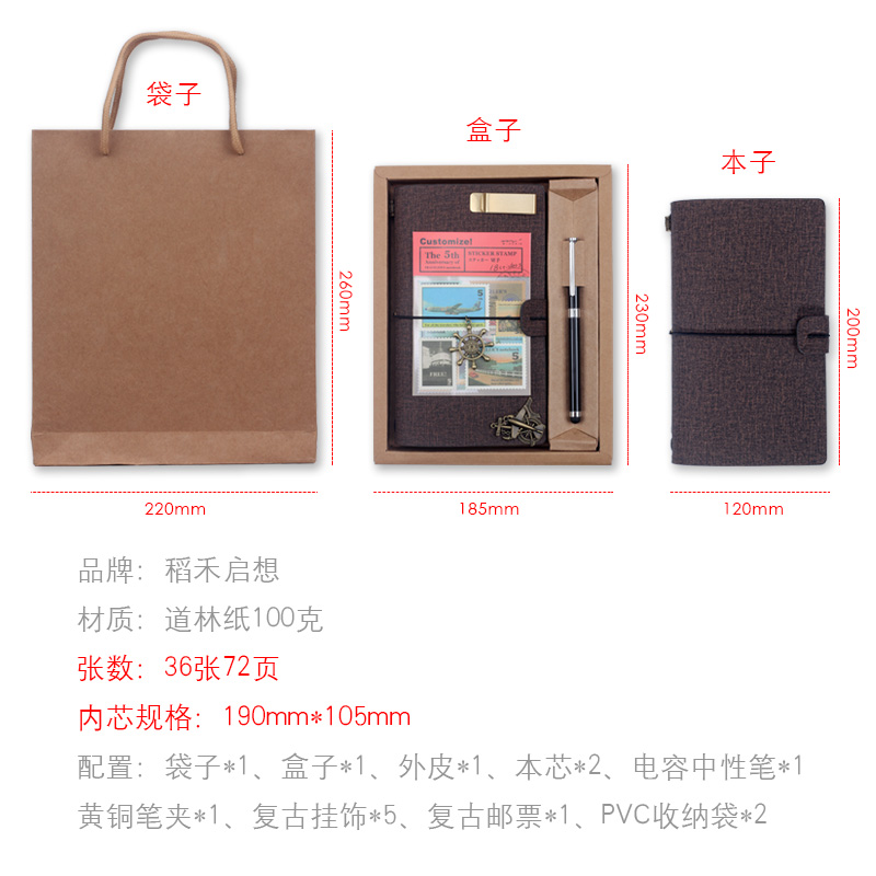 Creative notebook custom logo Business loose-leaf notepad simple College student diary tn hand book set a6 retro travel hand book literary hipster portable record book