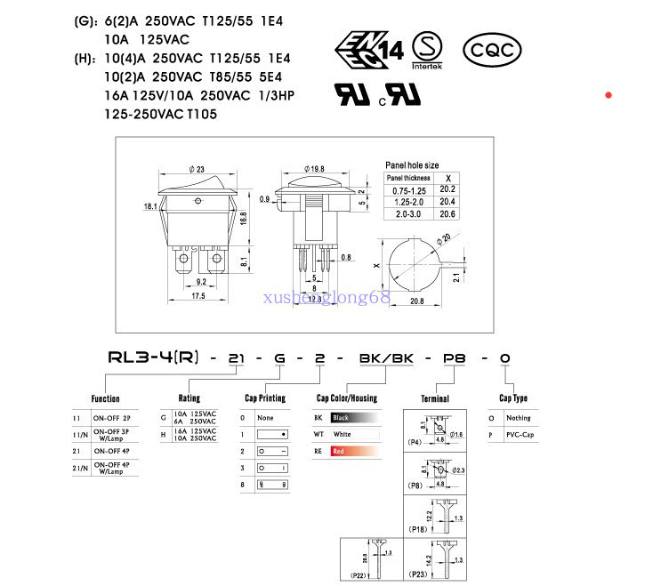 Rocker switch RL3-4 (R) 21 RLEIL branded seesaw switch 2 stalls 4 feet round lower down 6A