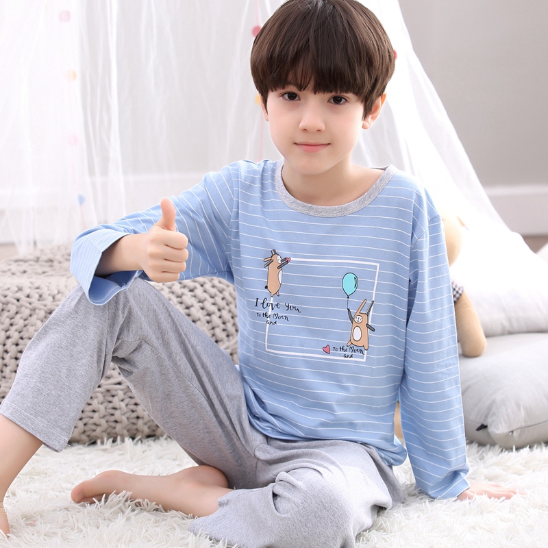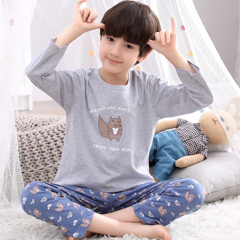 Boys pajamas spring and autumn cotton long-sleeved suits little boys middle and big children baby cotton children's home clothes spring models