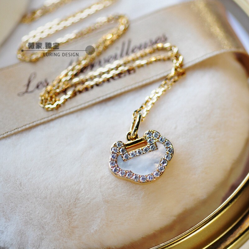 "Weijiao" Lock Natural white bell herd diamond 32 minutes 18K gold small pendant necklace pack