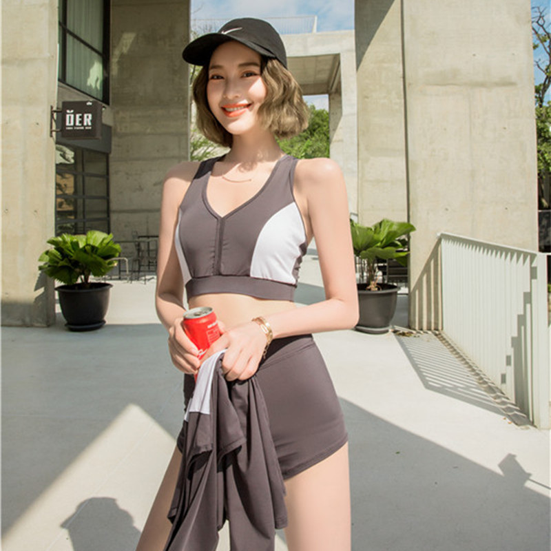 Net red swimsuit women's three-piece set split flat angle small chest conservative cover belly thin blouse sunscreen student sports hot spring